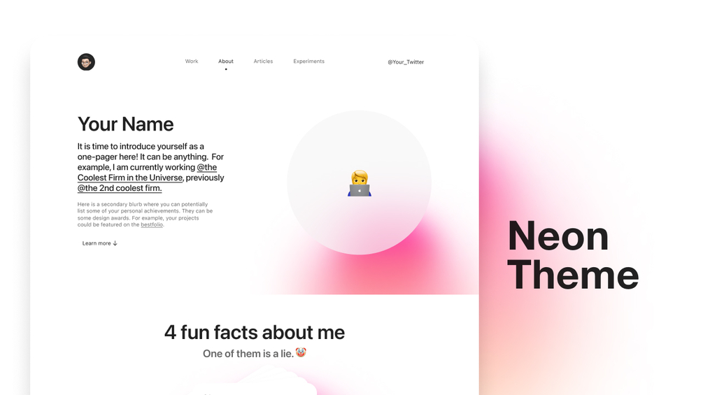 A portfolio start kit with Dark/Light/Neon themes