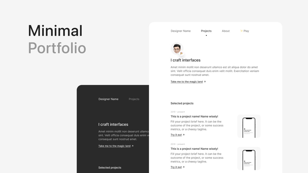 Minimal portfolio website UI kit